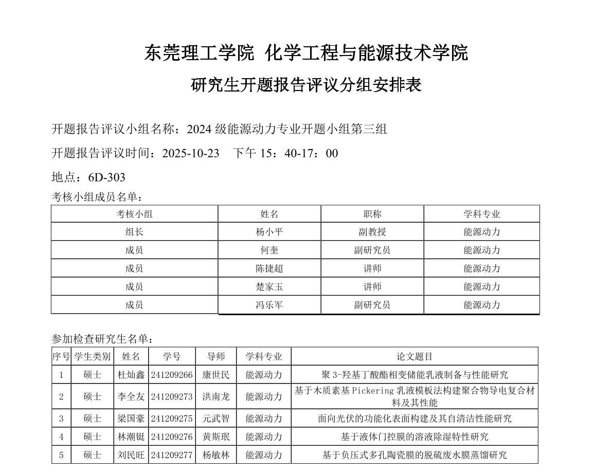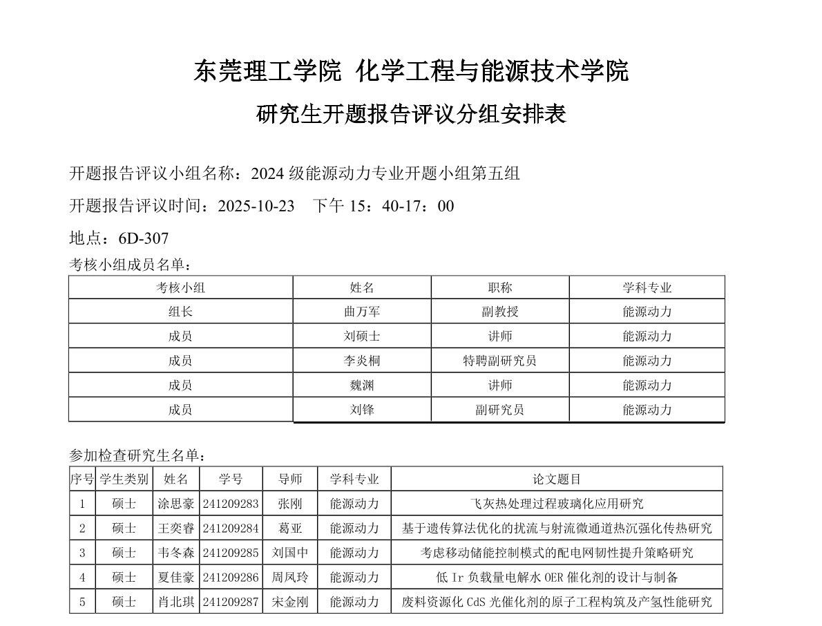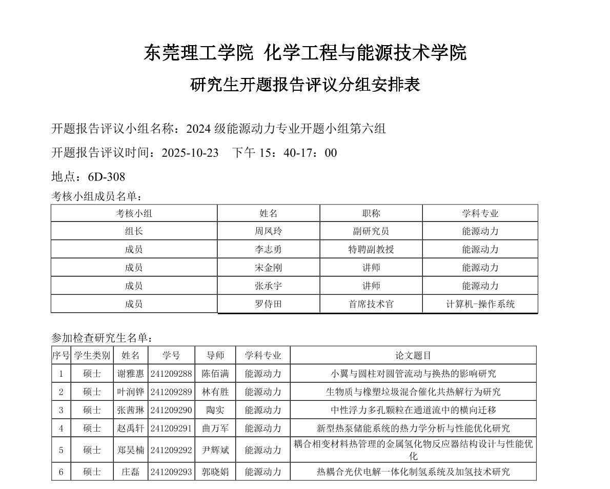 欧乐影院 能源动力学位点2024级研究生开题报告评议安排如下: