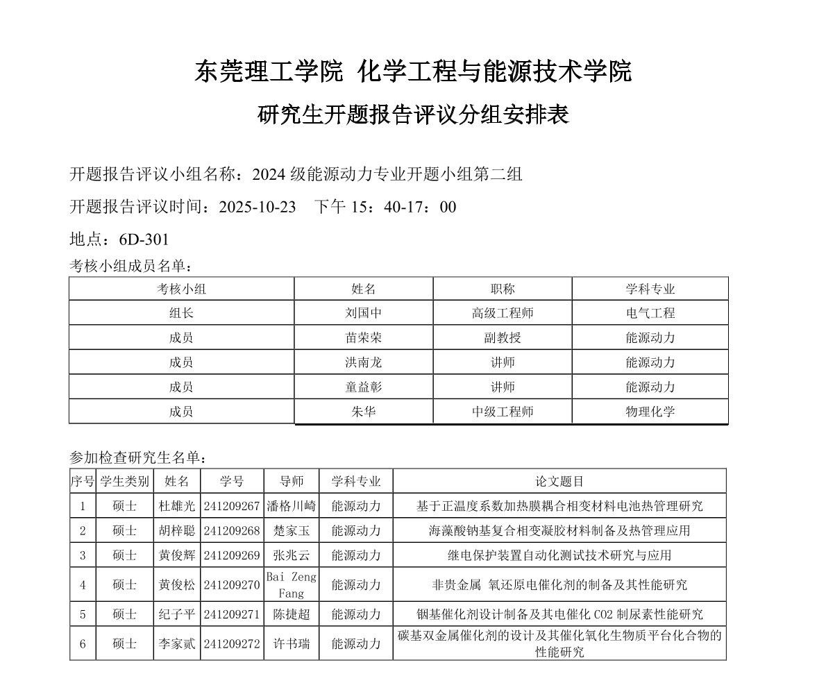 欧乐影院 能源动力学位点2024级研究生开题报告评议安排